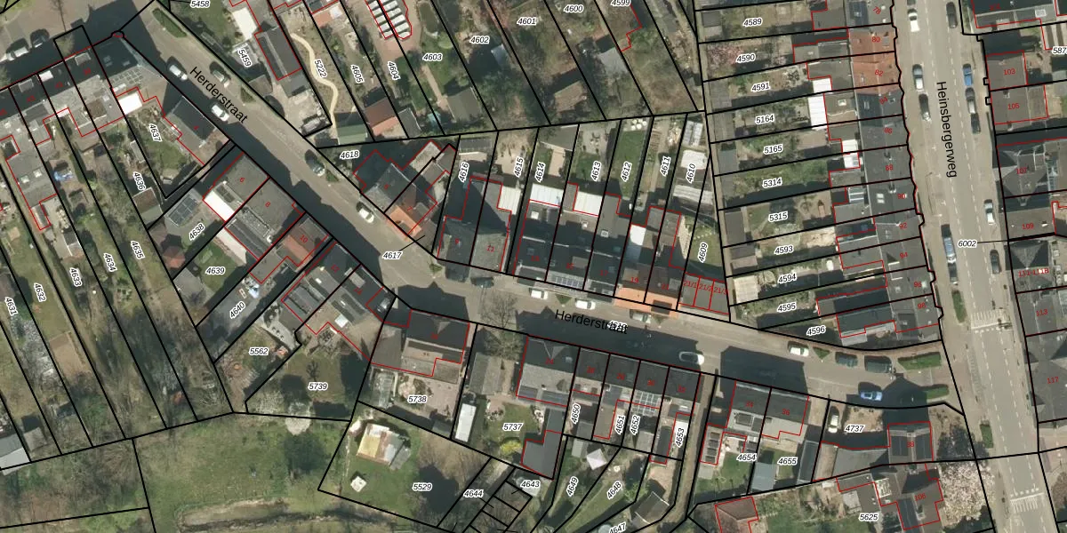 Herderstraat 13 is gelegen op kadastraal perceel RMD00C4614. Deze kadastrale aanduiding is uniek en wordt gebruikt door het Kadaster om eigendomsrechten en andere zakelijke rechten vast te leggen. Het perceel maakt onderdeel uit van de kadastrale gemeente Roermond.