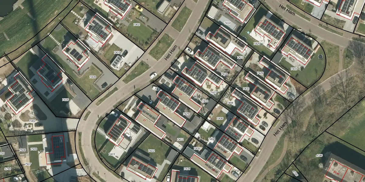 Het perceel waarop Het Ham 13 staat heeft een oppervlakte van 390 m². Dit is een groot perceel. De perceeloppervlakte wordt geregistreerd door het Kadaster. Gedetailleerde informatie over de maten van dit perceel kunt u vinden in het rapport Kadastrale kaart met maatvoering van Het Ham 13.