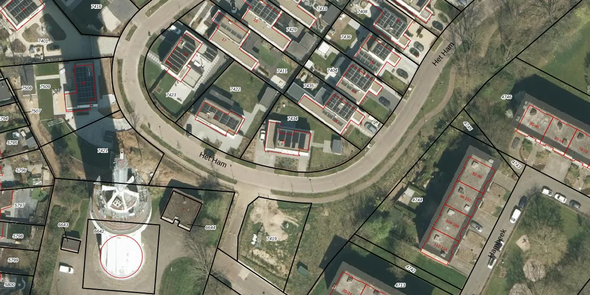 Het perceel waarop Het Ham 23 staat heeft een oppervlakte van 603 m². Dit is een groot perceel. De perceeloppervlakte wordt geregistreerd door het Kadaster. Gedetailleerde informatie over de maten van dit perceel kunt u vinden in het rapport Kadastrale kaart met maatvoering van Het Ham 23.