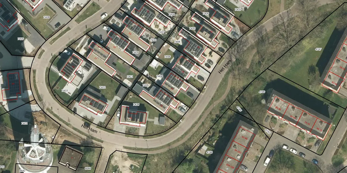 Het perceel waarop Het Ham 27 staat heeft een oppervlakte van 390 m². Dit is een groot perceel. De perceeloppervlakte wordt geregistreerd door het Kadaster. Gedetailleerde informatie over de maten van dit perceel kunt u vinden in het rapport Kadastrale kaart met maatvoering van Het Ham 27.