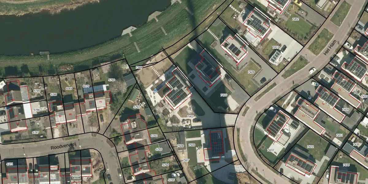 Het perceel waarop Het Ham 32 staat heeft een oppervlakte van 1165 m². Dit is een zeer groot perceel. De perceeloppervlakte wordt geregistreerd door het Kadaster. Gedetailleerde informatie over de maten van dit perceel kunt u vinden in het rapport Kadastrale kaart met maatvoering van Het Ham 32.