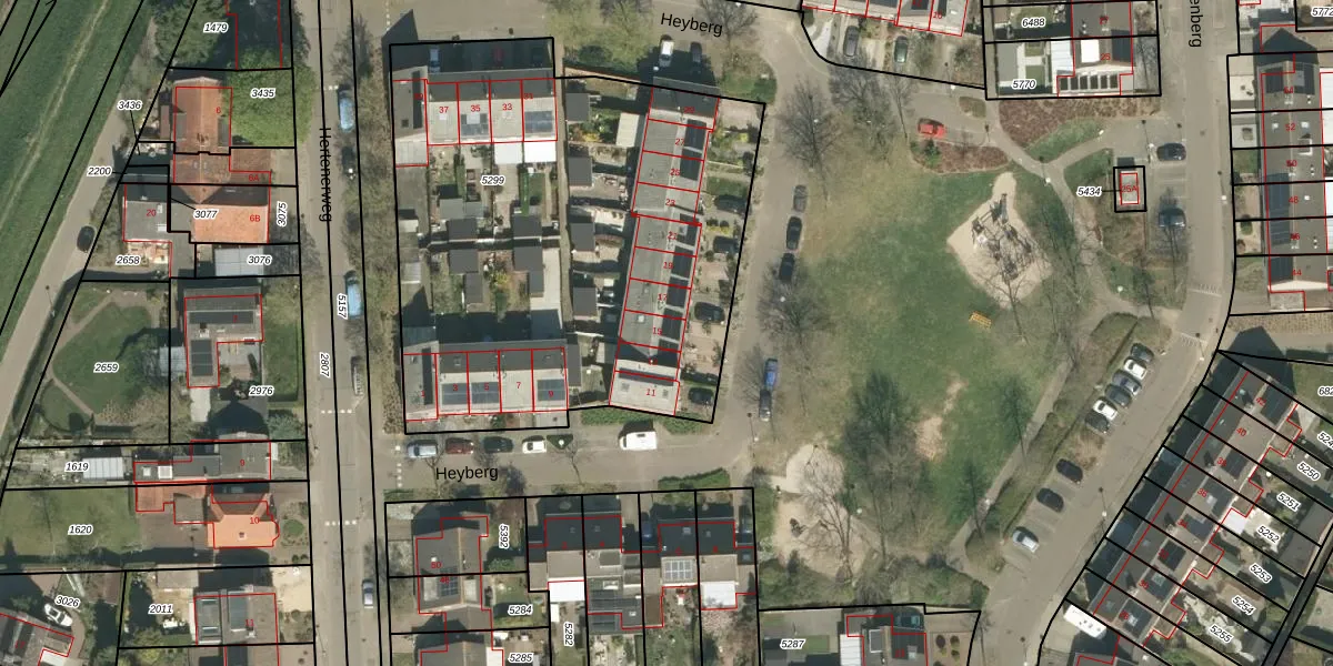 Het perceel waarop Heyberg 15 staat heeft een oppervlakte van 2743 m². Dit is een zeer groot perceel. De perceeloppervlakte wordt geregistreerd door het Kadaster. Gedetailleerde informatie over de maten van dit perceel kunt u vinden in het rapport Kadastrale kaart met maatvoering van Heyberg 15.