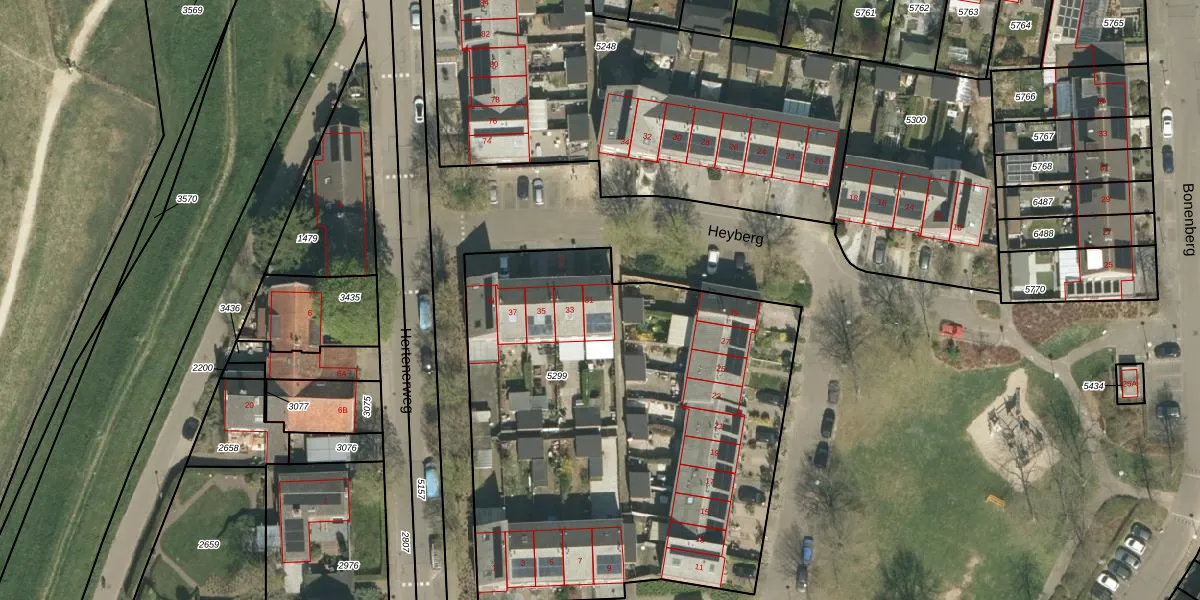 Het perceel waarop Heyberg 31 staat heeft een oppervlakte van 2743 m². Dit is een zeer groot perceel. De perceeloppervlakte wordt geregistreerd door het Kadaster. Gedetailleerde informatie over de maten van dit perceel kunt u vinden in het rapport Kadastrale kaart met maatvoering van Heyberg 31.