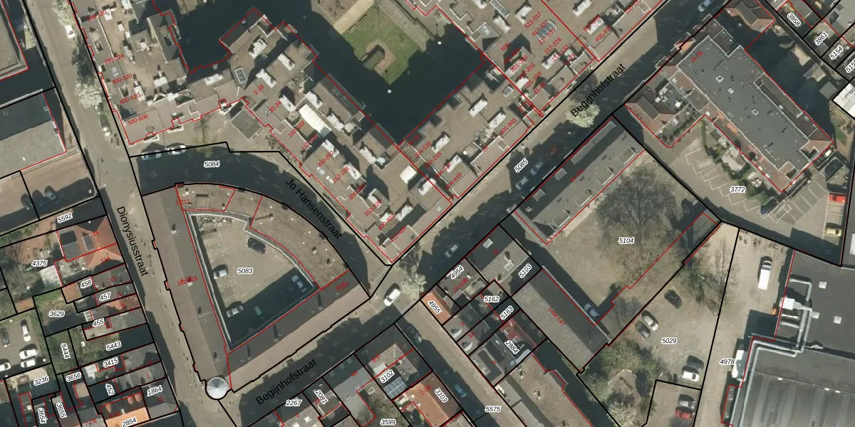 Jo Hansenstraat 102 is gelegen op kadastraal perceel RMD00D5655. Deze kadastrale aanduiding is uniek en wordt gebruikt door het Kadaster om eigendomsrechten en andere zakelijke rechten vast te leggen. Het perceel maakt onderdeel uit van de kadastrale gemeente Roermond.