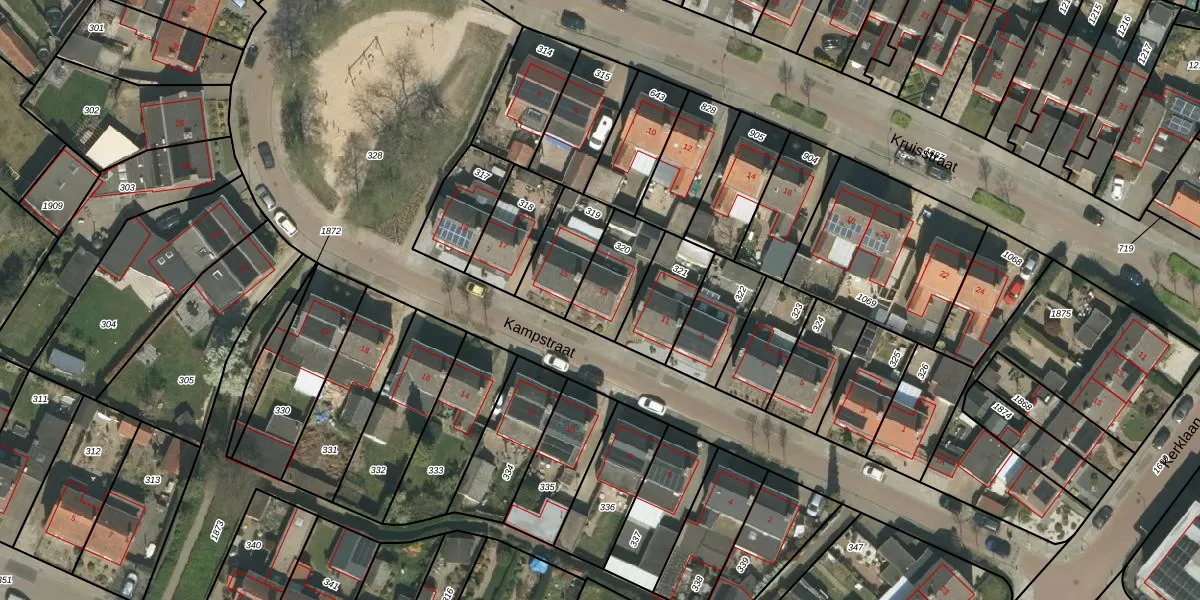 Het perceel waarop Kampstraat 13 staat heeft een oppervlakte van 186 m². Dit is een middelgroot perceel. De perceeloppervlakte wordt geregistreerd door het Kadaster. Gedetailleerde informatie over de maten van dit perceel kunt u vinden in het rapport Kadastrale kaart met maatvoering van Kampstraat 13.