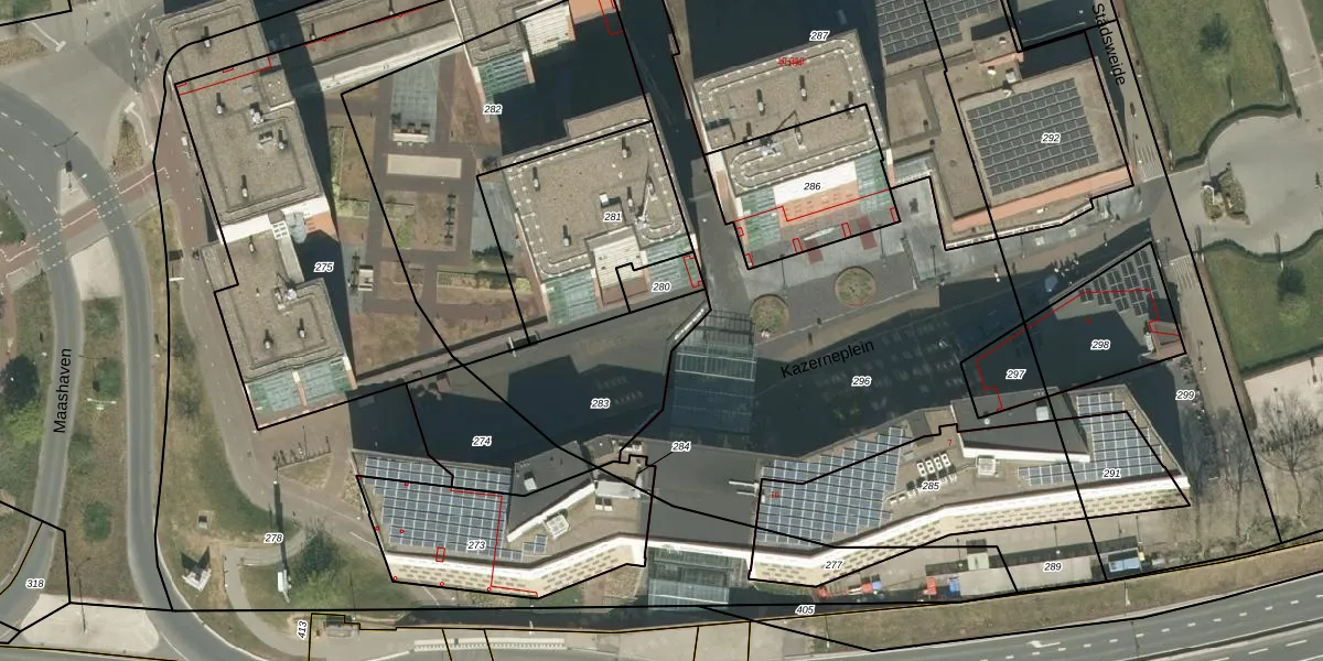 Het perceel waarop Kazerneplein 116 staat heeft een oppervlakte van 477 m². Dit is een groot perceel. De perceeloppervlakte wordt geregistreerd door het Kadaster. Gedetailleerde informatie over de maten van dit perceel kunt u vinden in het rapport Kadastrale kaart met maatvoering van Kazerneplein 116.