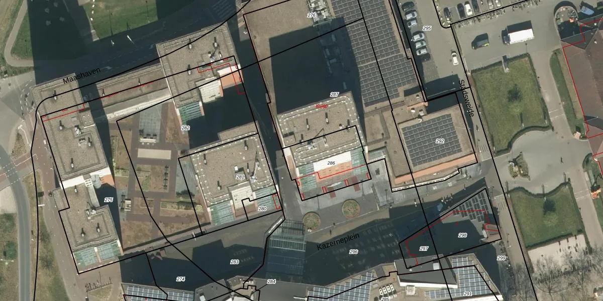 Kazerneplein 14 is gelegen op kadastraal perceel RMD00K286. Deze kadastrale aanduiding is uniek en wordt gebruikt door het Kadaster om eigendomsrechten en andere zakelijke rechten vast te leggen. Het perceel maakt onderdeel uit van de kadastrale gemeente Roermond.