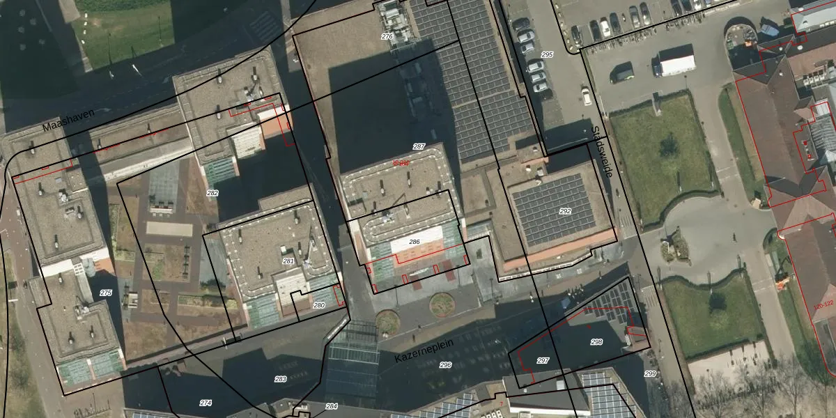 Kazerneplein 16 is gelegen op kadastraal perceel RMD00K286. Deze kadastrale aanduiding is uniek en wordt gebruikt door het Kadaster om eigendomsrechten en andere zakelijke rechten vast te leggen. Het perceel maakt onderdeel uit van de kadastrale gemeente Roermond.