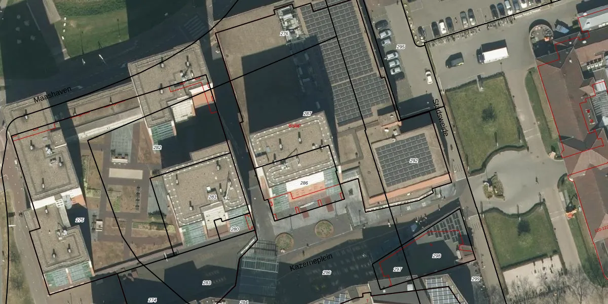 Kazerneplein 32 is gelegen op kadastraal perceel RMD00K287. Deze kadastrale aanduiding is uniek en wordt gebruikt door het Kadaster om eigendomsrechten en andere zakelijke rechten vast te leggen. Het perceel maakt onderdeel uit van de kadastrale gemeente Roermond.