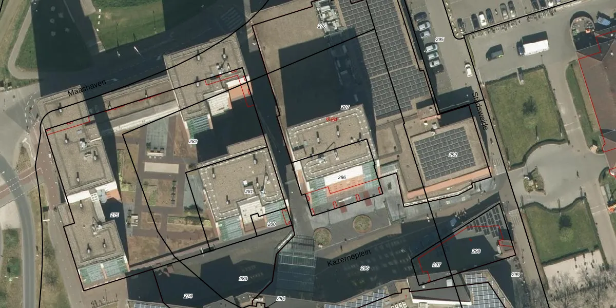 Kazerneplein 38 is gelegen op kadastraal perceel RMD00K287. Deze kadastrale aanduiding is uniek en wordt gebruikt door het Kadaster om eigendomsrechten en andere zakelijke rechten vast te leggen. Het perceel maakt onderdeel uit van de kadastrale gemeente Roermond.