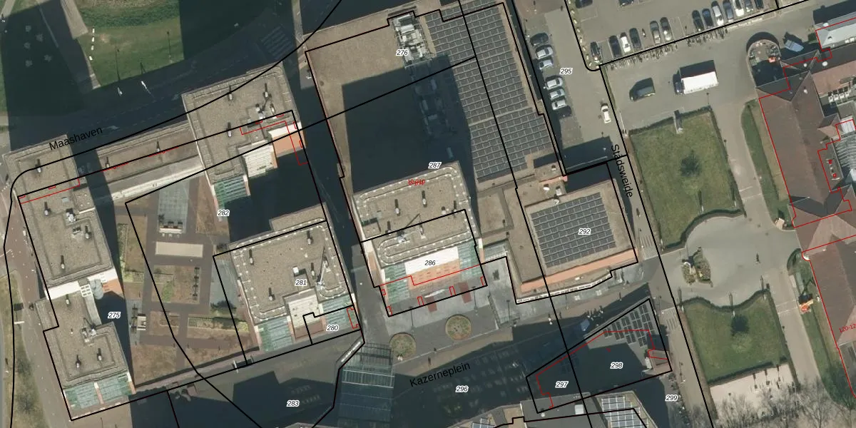 Kazerneplein 40 is gelegen op kadastraal perceel RMD00K287. Deze kadastrale aanduiding is uniek en wordt gebruikt door het Kadaster om eigendomsrechten en andere zakelijke rechten vast te leggen. Het perceel maakt onderdeel uit van de kadastrale gemeente Roermond.