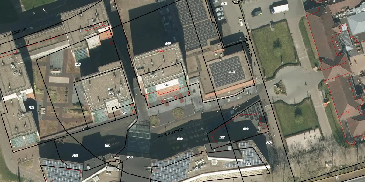 Kazerneplein 50 is gelegen op kadastraal perceel RMD00K286. Deze kadastrale aanduiding is uniek en wordt gebruikt door het Kadaster om eigendomsrechten en andere zakelijke rechten vast te leggen. Het perceel maakt onderdeel uit van de kadastrale gemeente Roermond.