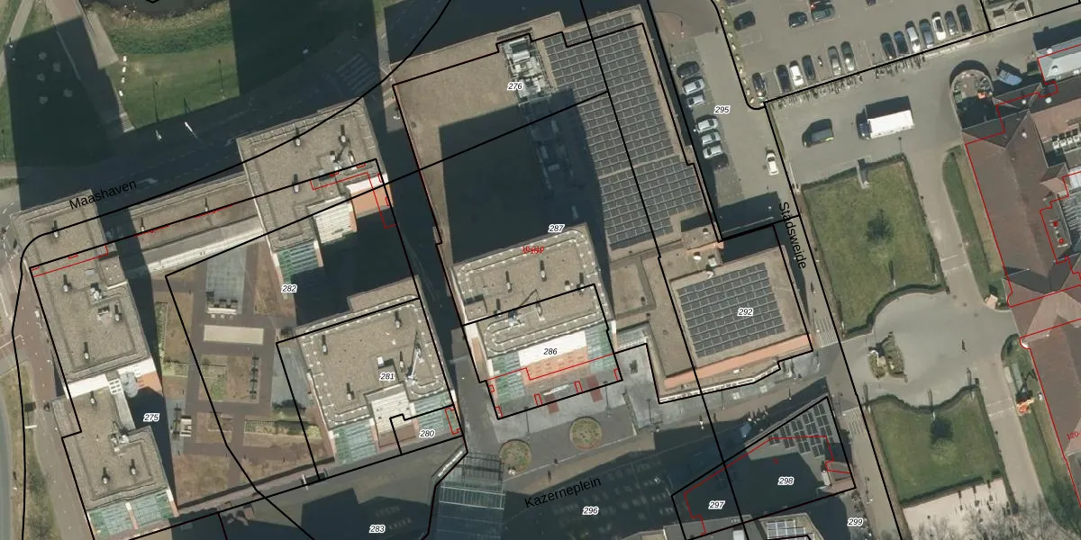 Kazerneplein 64 is gelegen op kadastraal perceel RMD00K287. Deze kadastrale aanduiding is uniek en wordt gebruikt door het Kadaster om eigendomsrechten en andere zakelijke rechten vast te leggen. Het perceel maakt onderdeel uit van de kadastrale gemeente Roermond.