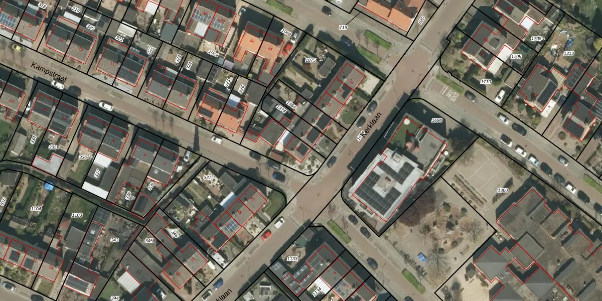 Het perceel waarop Kerklaan 21 staat heeft een oppervlakte van 890 m². Dit is een groot perceel. De perceeloppervlakte wordt geregistreerd door het Kadaster. Gedetailleerde informatie over de maten van dit perceel kunt u vinden in het rapport Kadastrale kaart met maatvoering van Kerklaan 21.