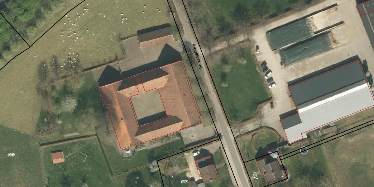 Het perceel waarop Kloosterweg 95 staat heeft een oppervlakte van 1,7 ha. Dit is een zeer groot perceel. De perceeloppervlakte wordt geregistreerd door het Kadaster. Gedetailleerde informatie over de maten van dit perceel kunt u vinden in het rapport Kadastrale kaart met maatvoering van Kloosterweg 95.