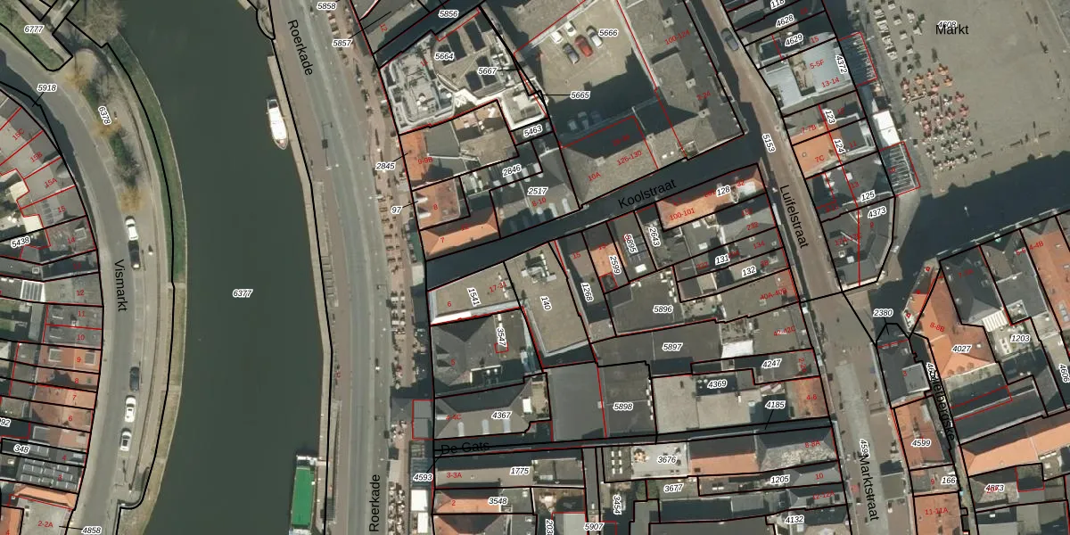 Koolstraat 21 is gelegen op kadastraal perceel RMD00D140. Deze kadastrale aanduiding is uniek en wordt gebruikt door het Kadaster om eigendomsrechten en andere zakelijke rechten vast te leggen. Het perceel maakt onderdeel uit van de kadastrale gemeente Roermond.