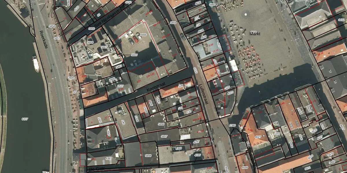 Koolstraat 7 is gelegen op kadastraal perceel RMD00D128. Deze kadastrale aanduiding is uniek en wordt gebruikt door het Kadaster om eigendomsrechten en andere zakelijke rechten vast te leggen. Het perceel maakt onderdeel uit van de kadastrale gemeente Roermond.