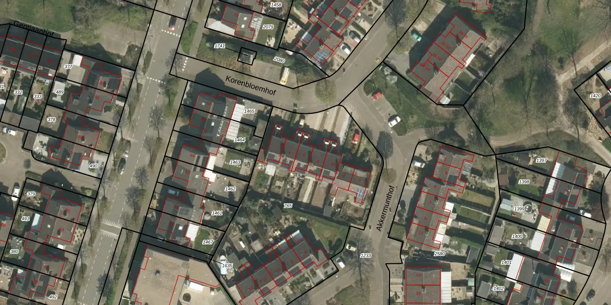 Korenbloemhof 6 is gelegen op kadastraal perceel RMD00H765. Deze kadastrale aanduiding is uniek en wordt gebruikt door het Kadaster om eigendomsrechten en andere zakelijke rechten vast te leggen. Het perceel maakt onderdeel uit van de kadastrale gemeente Roermond.