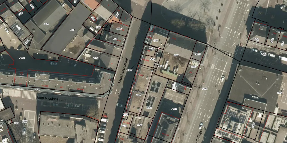 Het perceel waarop Kruisherenstraat 3-A staat heeft een oppervlakte van 392 m². Dit is een groot perceel. De perceeloppervlakte wordt geregistreerd door het Kadaster. Gedetailleerde informatie over de maten van dit perceel kunt u vinden in het rapport Kadastrale kaart met maatvoering van Kruisherenstraat 3-A.