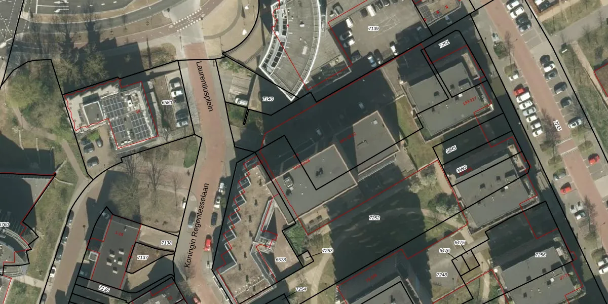 Het perceel waarop Laurentiusplein 3 staat heeft een oppervlakte van 5000 m². Dit is een zeer groot perceel. De perceeloppervlakte wordt geregistreerd door het Kadaster. Gedetailleerde informatie over de maten van dit perceel kunt u vinden in het rapport Kadastrale kaart met maatvoering van Laurentiusplein 3.