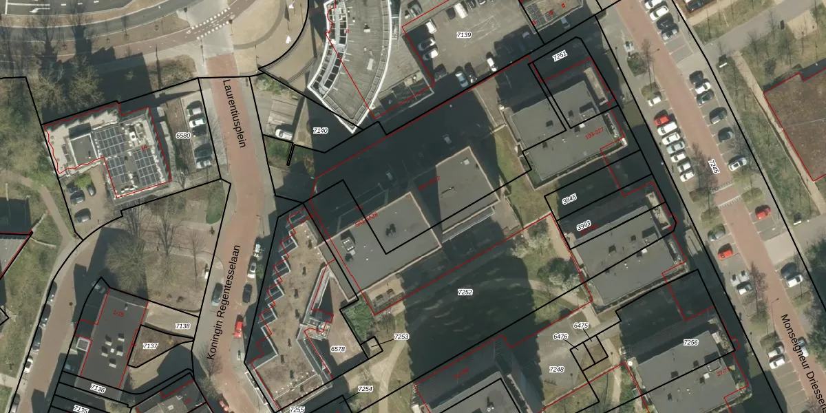 Het perceel waarop Laurentiusplein 5-A-25 staat heeft een oppervlakte van 5000 m². Dit is een zeer groot perceel. De perceeloppervlakte wordt geregistreerd door het Kadaster. Gedetailleerde informatie over de maten van dit perceel kunt u vinden in het rapport Kadastrale kaart met maatvoering van Laurentiusplein 5-A-25.
