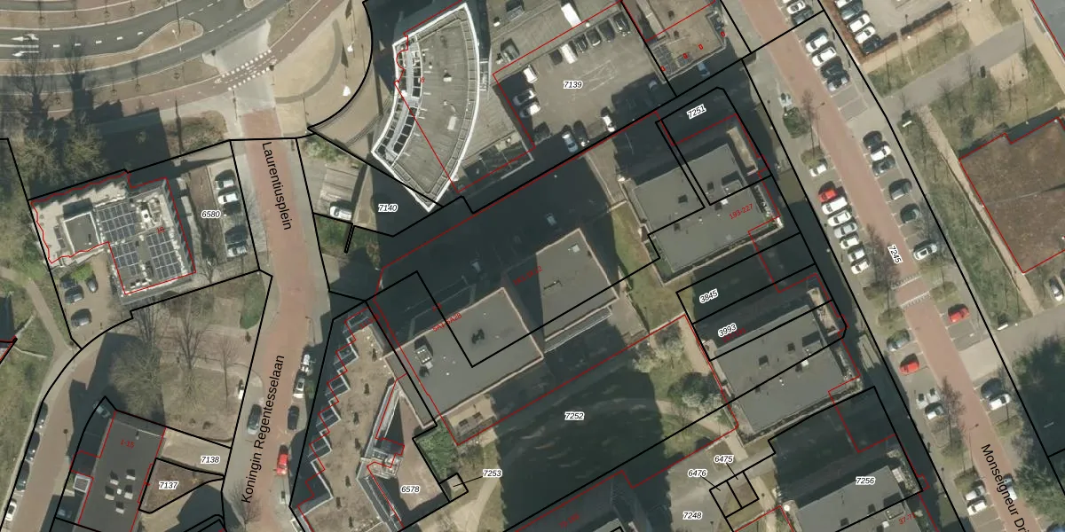 Het perceel waarop Laurentiusplein 5-A-4 staat heeft een oppervlakte van 5000 m². Dit is een zeer groot perceel. De perceeloppervlakte wordt geregistreerd door het Kadaster. Gedetailleerde informatie over de maten van dit perceel kunt u vinden in het rapport Kadastrale kaart met maatvoering van Laurentiusplein 5-A-4.