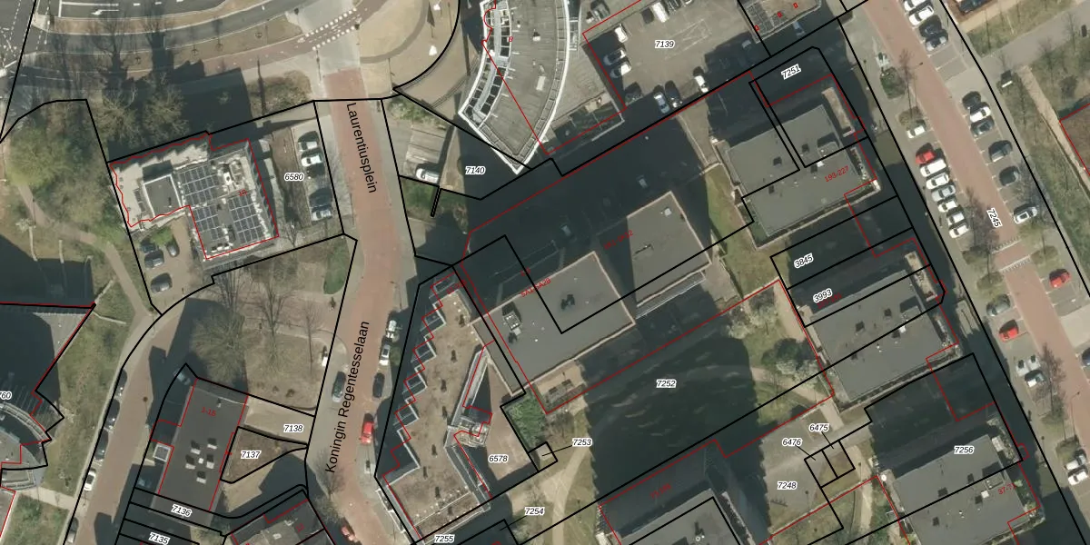 Het perceel waarop Laurentiusplein 5-A-7 staat heeft een oppervlakte van 5000 m². Dit is een zeer groot perceel. De perceeloppervlakte wordt geregistreerd door het Kadaster. Gedetailleerde informatie over de maten van dit perceel kunt u vinden in het rapport Kadastrale kaart met maatvoering van Laurentiusplein 5-A-7.