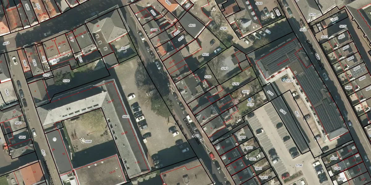 Lindanusstraat 12 is gelegen op kadastraal perceel RMD00D5150. Deze kadastrale aanduiding is uniek en wordt gebruikt door het Kadaster om eigendomsrechten en andere zakelijke rechten vast te leggen. Het perceel maakt onderdeel uit van de kadastrale gemeente Roermond.
