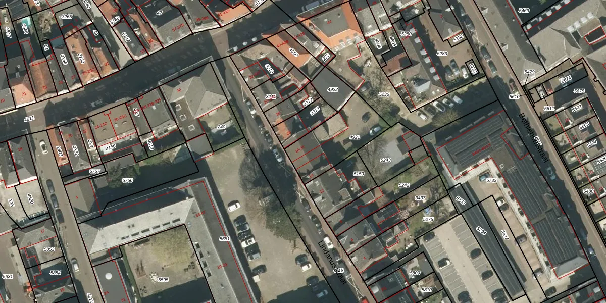 Lindanusstraat 20 is gelegen op kadastraal perceel RMD00D4921. Deze kadastrale aanduiding is uniek en wordt gebruikt door het Kadaster om eigendomsrechten en andere zakelijke rechten vast te leggen. Het perceel maakt onderdeel uit van de kadastrale gemeente Roermond.