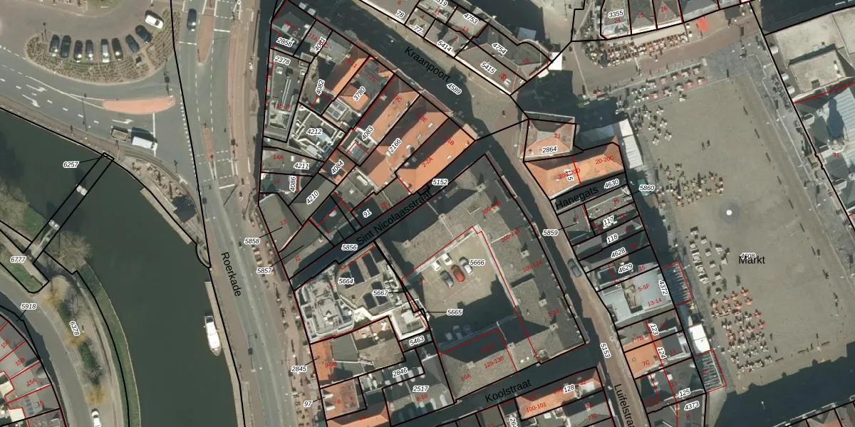 Luifelstraat 6 is gelegen op kadastraal perceel RMD00D5666. Deze kadastrale aanduiding is uniek en wordt gebruikt door het Kadaster om eigendomsrechten en andere zakelijke rechten vast te leggen. Het perceel maakt onderdeel uit van de kadastrale gemeente Roermond.