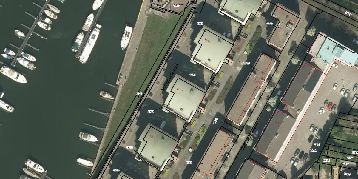Het perceel waarop Maasboulevard 37 staat heeft een oppervlakte van 320 m². Dit is een groot perceel. De perceeloppervlakte wordt geregistreerd door het Kadaster. Gedetailleerde informatie over de maten van dit perceel kunt u vinden in het rapport Kadastrale kaart met maatvoering van Maasboulevard 37.