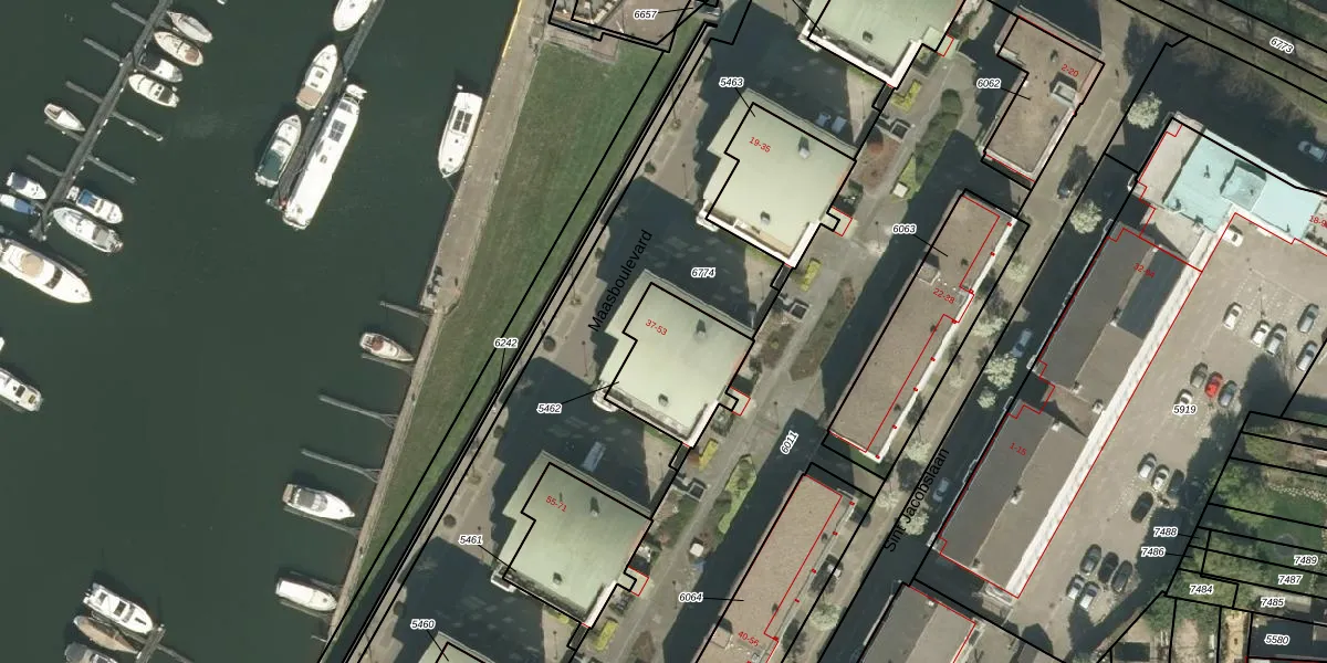 Maasboulevard 45 is gelegen op kadastraal perceel RMD00C5462. Deze kadastrale aanduiding is uniek en wordt gebruikt door het Kadaster om eigendomsrechten en andere zakelijke rechten vast te leggen. Het perceel maakt onderdeel uit van de kadastrale gemeente Roermond.