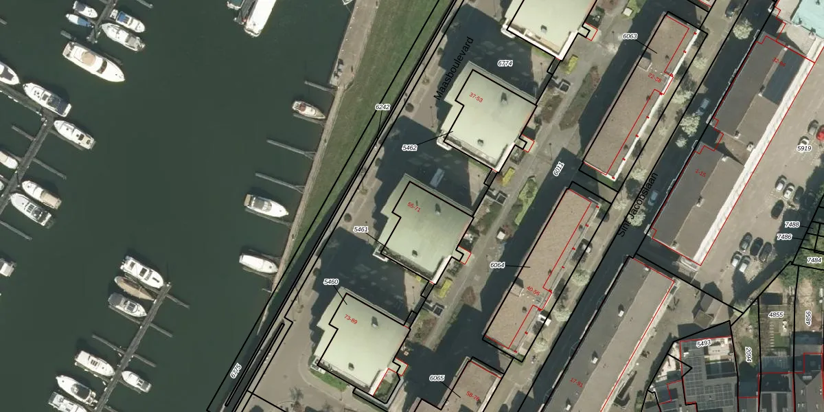 Het perceel waarop Maasboulevard 55 staat heeft een oppervlakte van 320 m². Dit is een groot perceel. De perceeloppervlakte wordt geregistreerd door het Kadaster. Gedetailleerde informatie over de maten van dit perceel kunt u vinden in het rapport Kadastrale kaart met maatvoering van Maasboulevard 55.
