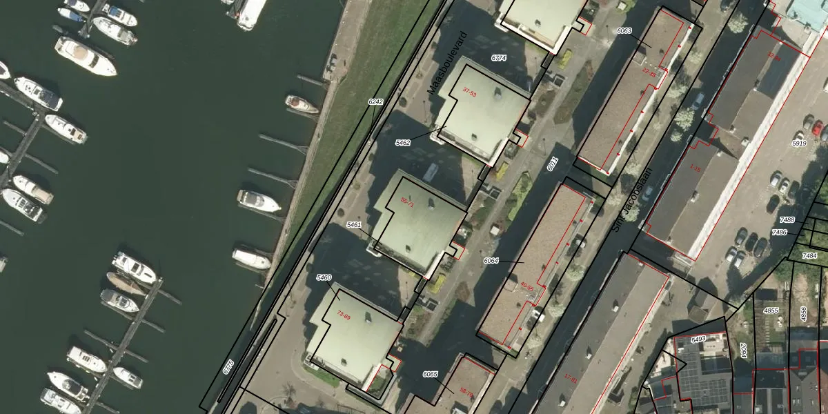 Het perceel waarop Maasboulevard 67 staat heeft een oppervlakte van 320 m². Dit is een groot perceel. De perceeloppervlakte wordt geregistreerd door het Kadaster. Gedetailleerde informatie over de maten van dit perceel kunt u vinden in het rapport Kadastrale kaart met maatvoering van Maasboulevard 67.