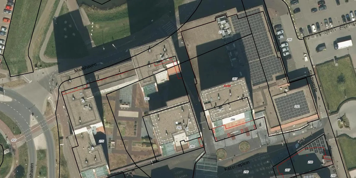 Het perceel waarop Maashaven 156 staat heeft een oppervlakte van 1237 m². Dit is een zeer groot perceel. De perceeloppervlakte wordt geregistreerd door het Kadaster. Gedetailleerde informatie over de maten van dit perceel kunt u vinden in het rapport Kadastrale kaart met maatvoering van Maashaven 156.