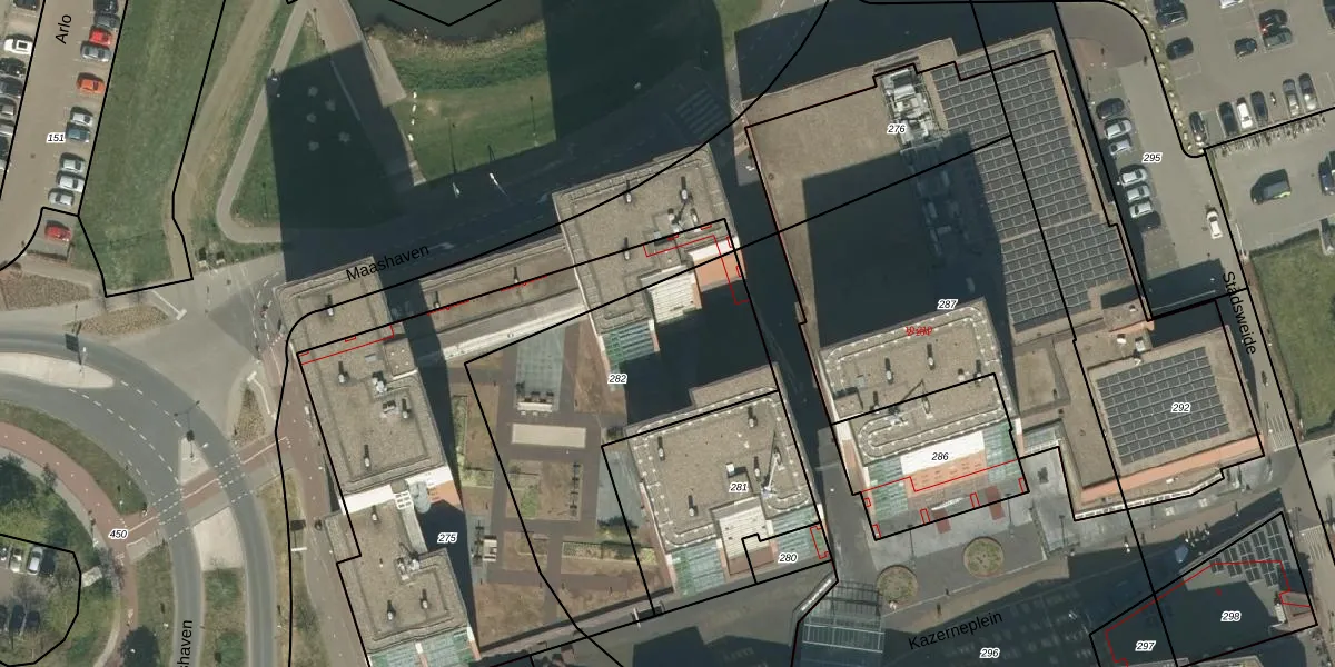 Maashaven 160 is gelegen op kadastraal perceel RMD00K282. Deze kadastrale aanduiding is uniek en wordt gebruikt door het Kadaster om eigendomsrechten en andere zakelijke rechten vast te leggen. Het perceel maakt onderdeel uit van de kadastrale gemeente Roermond.