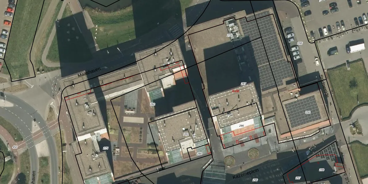Het perceel waarop Maashaven 162 staat heeft een oppervlakte van 1237 m². Dit is een zeer groot perceel. De perceeloppervlakte wordt geregistreerd door het Kadaster. Gedetailleerde informatie over de maten van dit perceel kunt u vinden in het rapport Kadastrale kaart met maatvoering van Maashaven 162.