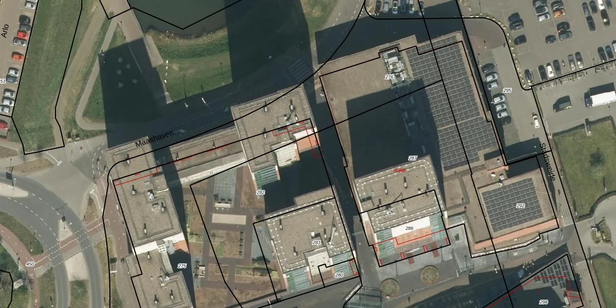 Het perceel waarop Maashaven 192 staat heeft een oppervlakte van 1237 m². Dit is een zeer groot perceel. De perceeloppervlakte wordt geregistreerd door het Kadaster. Gedetailleerde informatie over de maten van dit perceel kunt u vinden in het rapport Kadastrale kaart met maatvoering van Maashaven 192.