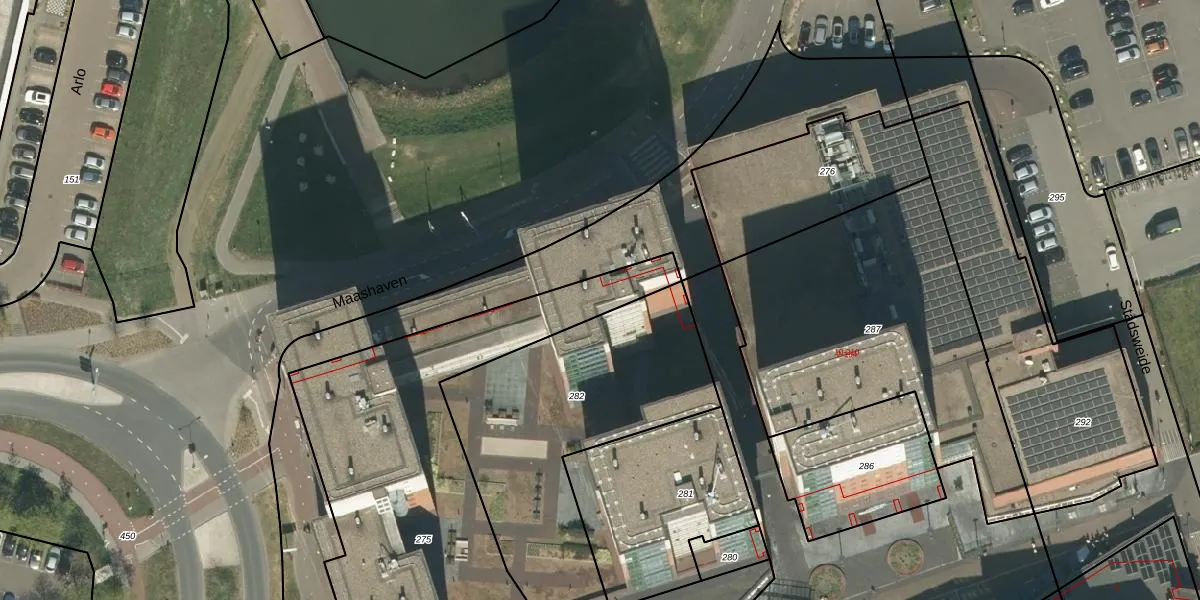 Maashaven 208 is gelegen op kadastraal perceel RMD00K275. Deze kadastrale aanduiding is uniek en wordt gebruikt door het Kadaster om eigendomsrechten en andere zakelijke rechten vast te leggen. Het perceel maakt onderdeel uit van de kadastrale gemeente Roermond.