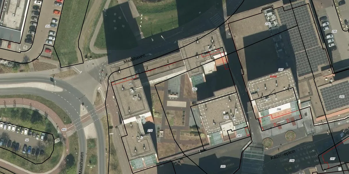 Het perceel waarop Maashaven 26 staat heeft een oppervlakte van 1237 m². Dit is een zeer groot perceel. De perceeloppervlakte wordt geregistreerd door het Kadaster. Gedetailleerde informatie over de maten van dit perceel kunt u vinden in het rapport Kadastrale kaart met maatvoering van Maashaven 26.