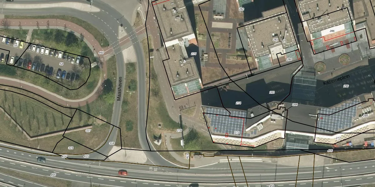 Het perceel waarop Maashaven 30 staat heeft een oppervlakte van 1707 m². Dit is een zeer groot perceel. De perceeloppervlakte wordt geregistreerd door het Kadaster. Gedetailleerde informatie over de maten van dit perceel kunt u vinden in het rapport Kadastrale kaart met maatvoering van Maashaven 30.