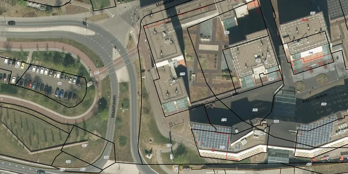 Maashaven 74 is gelegen op kadastraal perceel RMD00K275. Deze kadastrale aanduiding is uniek en wordt gebruikt door het Kadaster om eigendomsrechten en andere zakelijke rechten vast te leggen. Het perceel maakt onderdeel uit van de kadastrale gemeente Roermond.