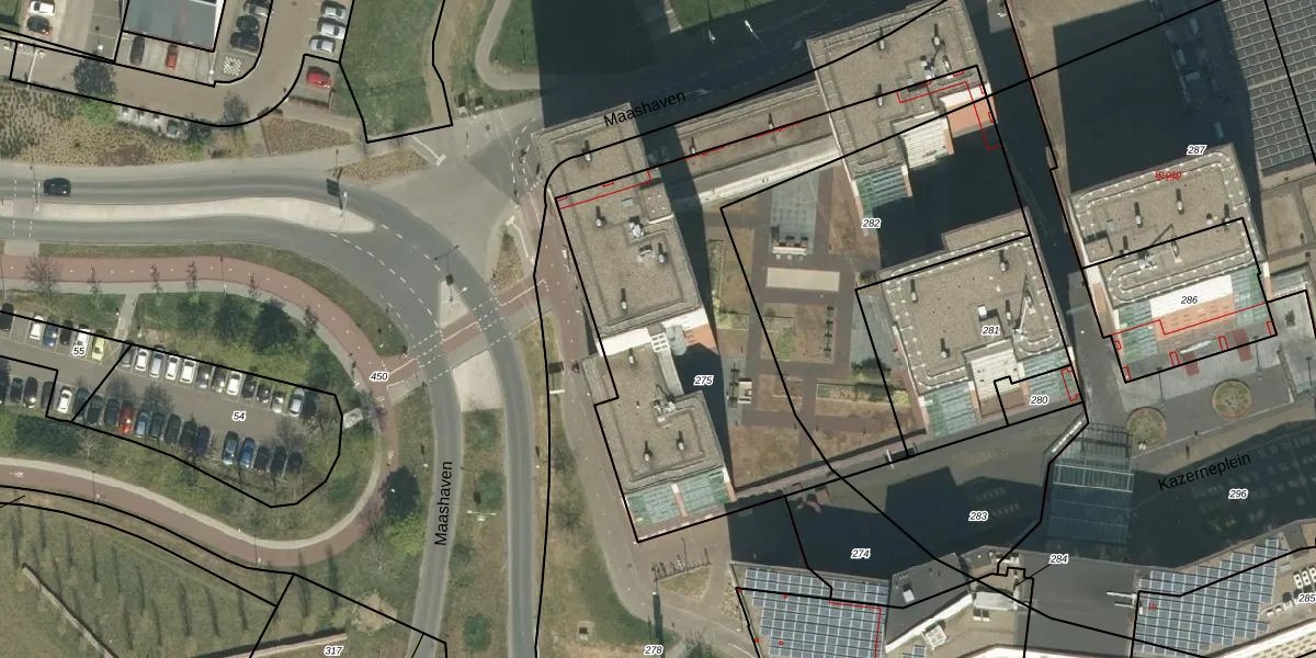 Het perceel waarop Maashaven 78 staat heeft een oppervlakte van 1707 m². Dit is een zeer groot perceel. De perceeloppervlakte wordt geregistreerd door het Kadaster. Gedetailleerde informatie over de maten van dit perceel kunt u vinden in het rapport Kadastrale kaart met maatvoering van Maashaven 78.