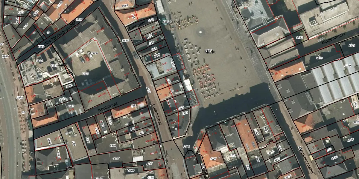 Het perceel waarop Markt 11 staat heeft een oppervlakte van 100 m². Dit is een middelgroot perceel. De perceeloppervlakte wordt geregistreerd door het Kadaster. Gedetailleerde informatie over de maten van dit perceel kunt u vinden in het rapport Kadastrale kaart met maatvoering van Markt 11.