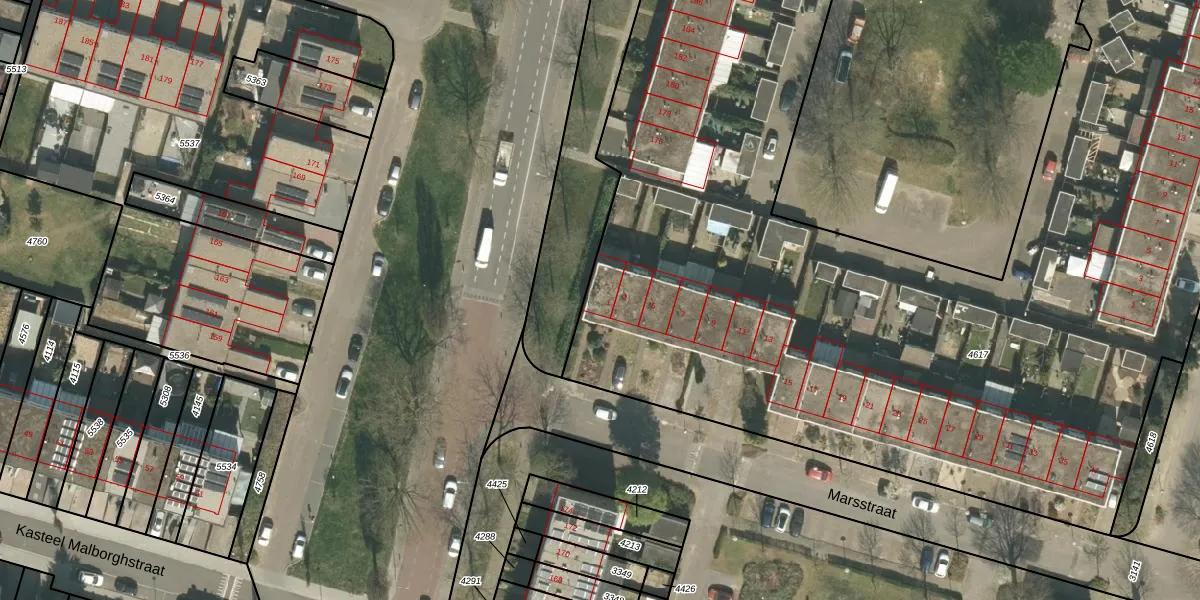 Het perceel waarop Marsstraat 1 staat heeft een oppervlakte van 8585 m². Dit is een zeer groot perceel. De perceeloppervlakte wordt geregistreerd door het Kadaster. Gedetailleerde informatie over de maten van dit perceel kunt u vinden in het rapport Kadastrale kaart met maatvoering van Marsstraat 1.