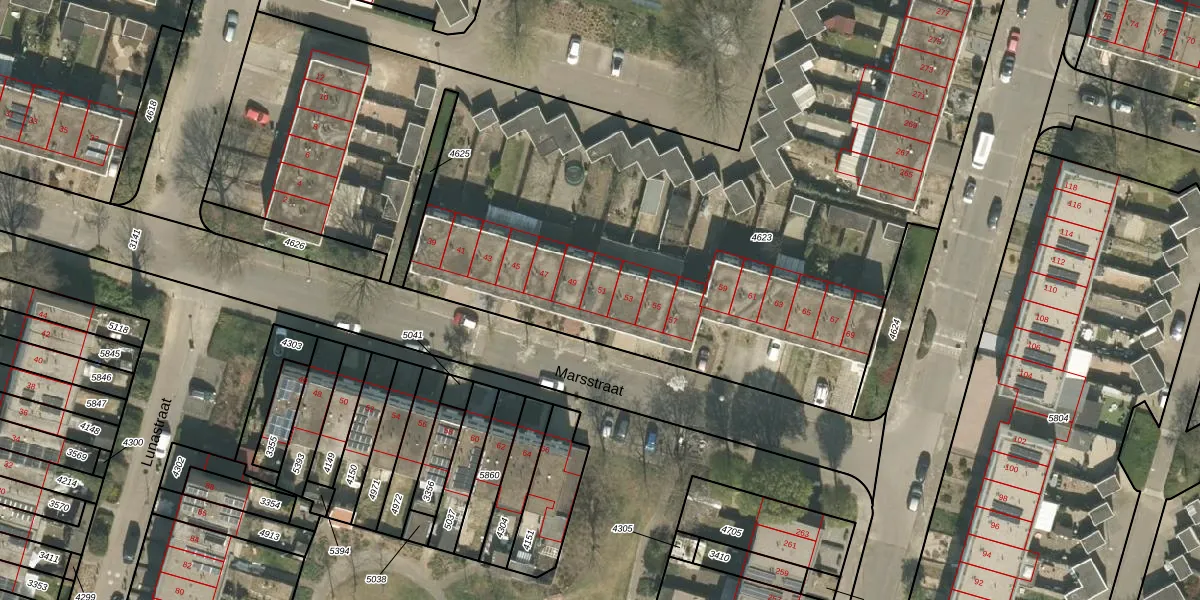 Het perceel waarop Marsstraat 51 staat heeft een oppervlakte van 6455 m². Dit is een zeer groot perceel. De perceeloppervlakte wordt geregistreerd door het Kadaster. Gedetailleerde informatie over de maten van dit perceel kunt u vinden in het rapport Kadastrale kaart met maatvoering van Marsstraat 51.