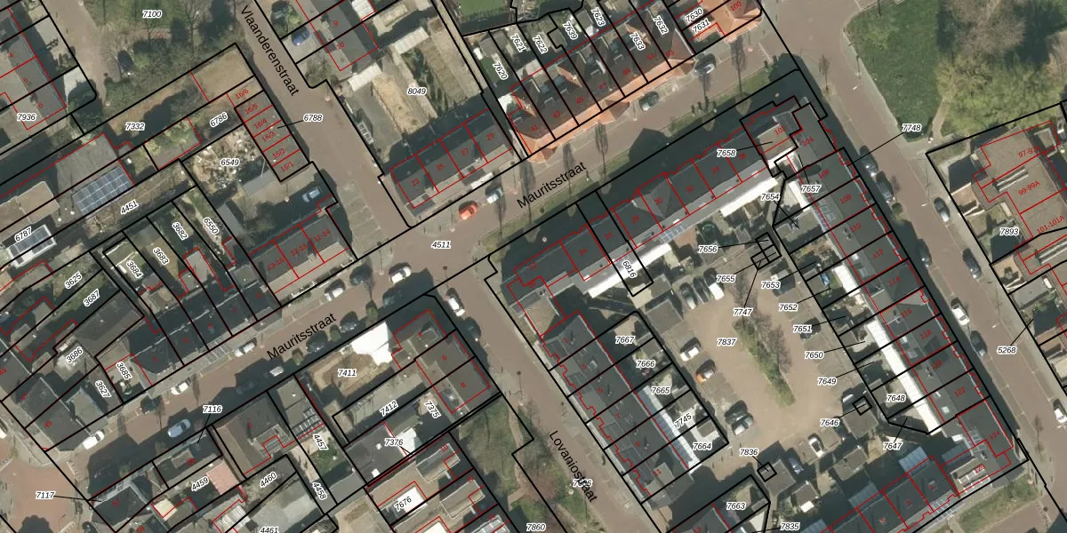 Het perceel waarop Mauritsstraat 22 staat heeft een oppervlakte van 3707 m². Dit is een zeer groot perceel. De perceeloppervlakte wordt geregistreerd door het Kadaster. Gedetailleerde informatie over de maten van dit perceel kunt u vinden in het rapport Kadastrale kaart met maatvoering van Mauritsstraat 22.