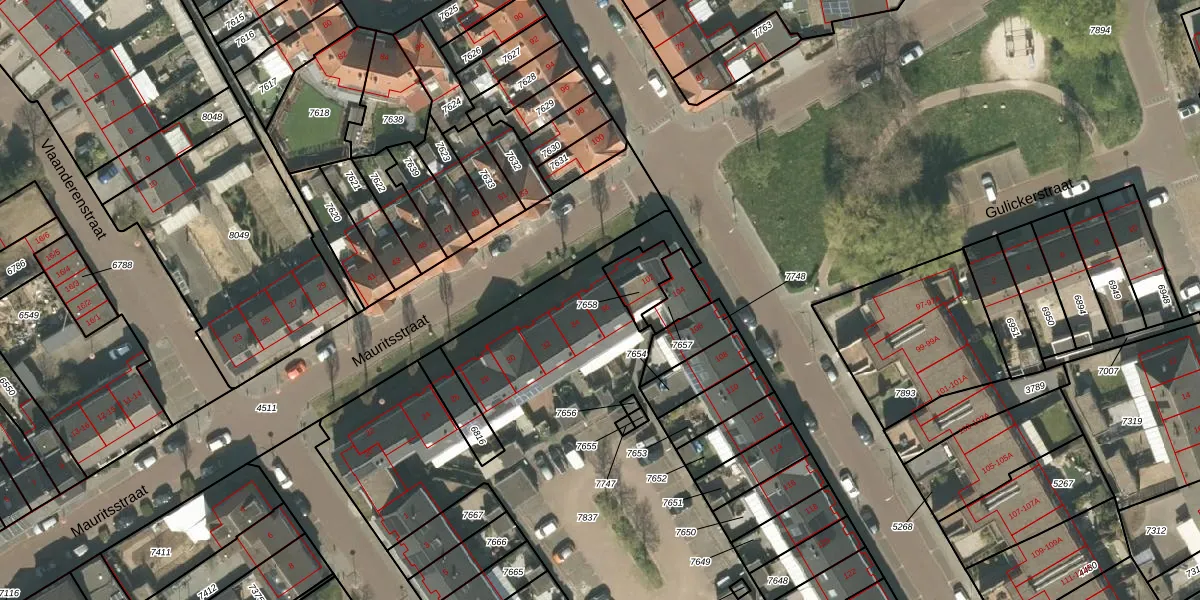 Het perceel waarop Mauritsstraat 36 staat heeft een oppervlakte van 3707 m². Dit is een zeer groot perceel. De perceeloppervlakte wordt geregistreerd door het Kadaster. Gedetailleerde informatie over de maten van dit perceel kunt u vinden in het rapport Kadastrale kaart met maatvoering van Mauritsstraat 36.