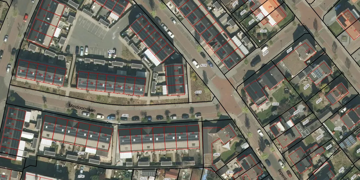 Meidoornlaan 13 is gelegen op kadastraal perceel RMD00F4014. Deze kadastrale aanduiding is uniek en wordt gebruikt door het Kadaster om eigendomsrechten en andere zakelijke rechten vast te leggen. Het perceel maakt onderdeel uit van de kadastrale gemeente Roermond.