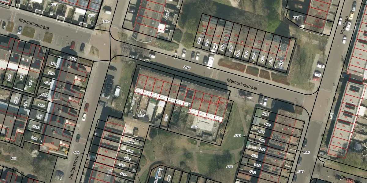 Het perceel waarop Mercuriusstraat 16 staat heeft een oppervlakte van 902 m². Dit is een groot perceel. De perceeloppervlakte wordt geregistreerd door het Kadaster. Gedetailleerde informatie over de maten van dit perceel kunt u vinden in het rapport Kadastrale kaart met maatvoering van Mercuriusstraat 16.